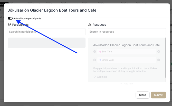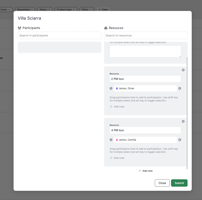 If a service includes multiple resources, or if you wish to add more, you’ll need to manually allocate participants. Here’s how:
